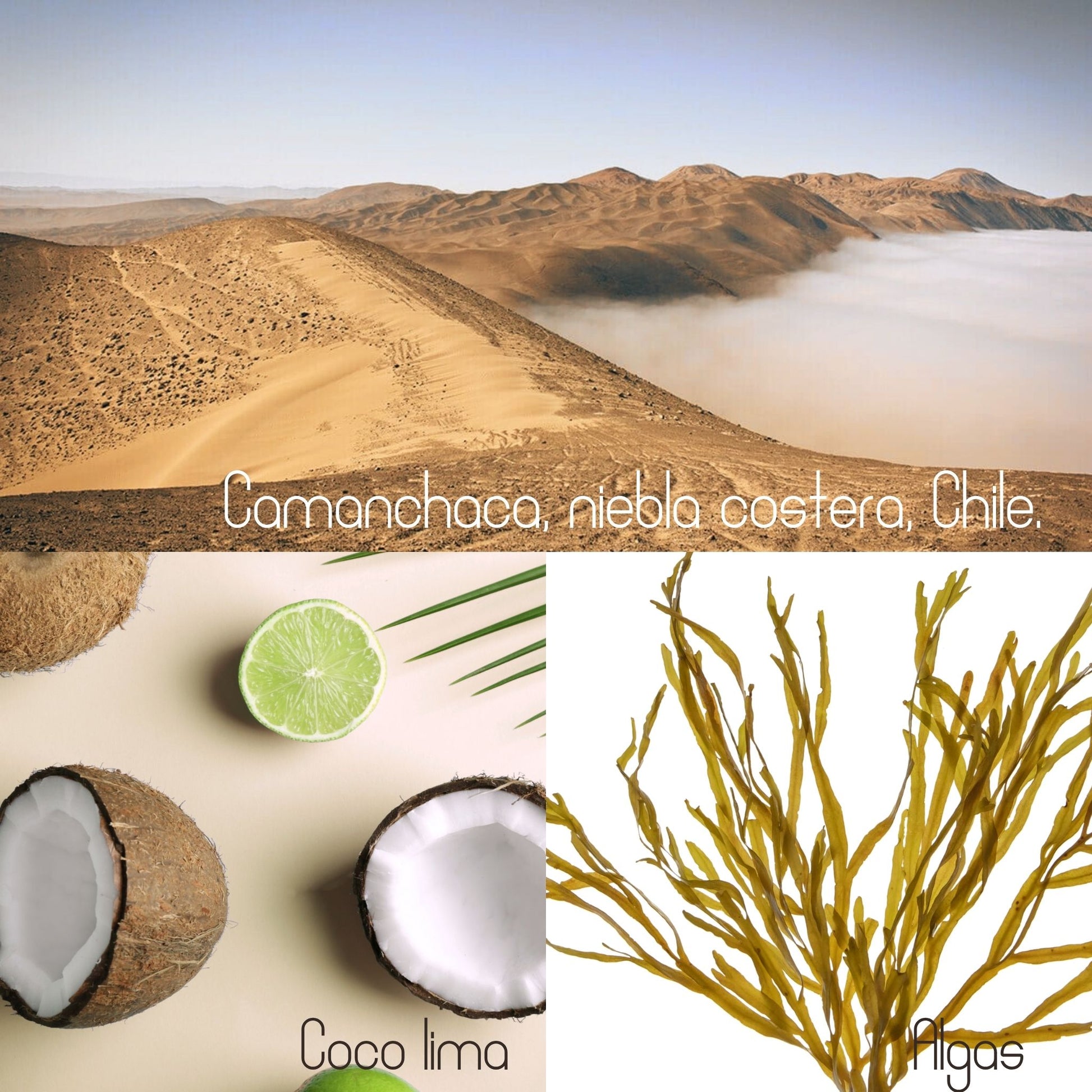 Huele a ambiente marino del borde costero, con toques frutales de coco y frescura de rocío matutino, algas y limón.